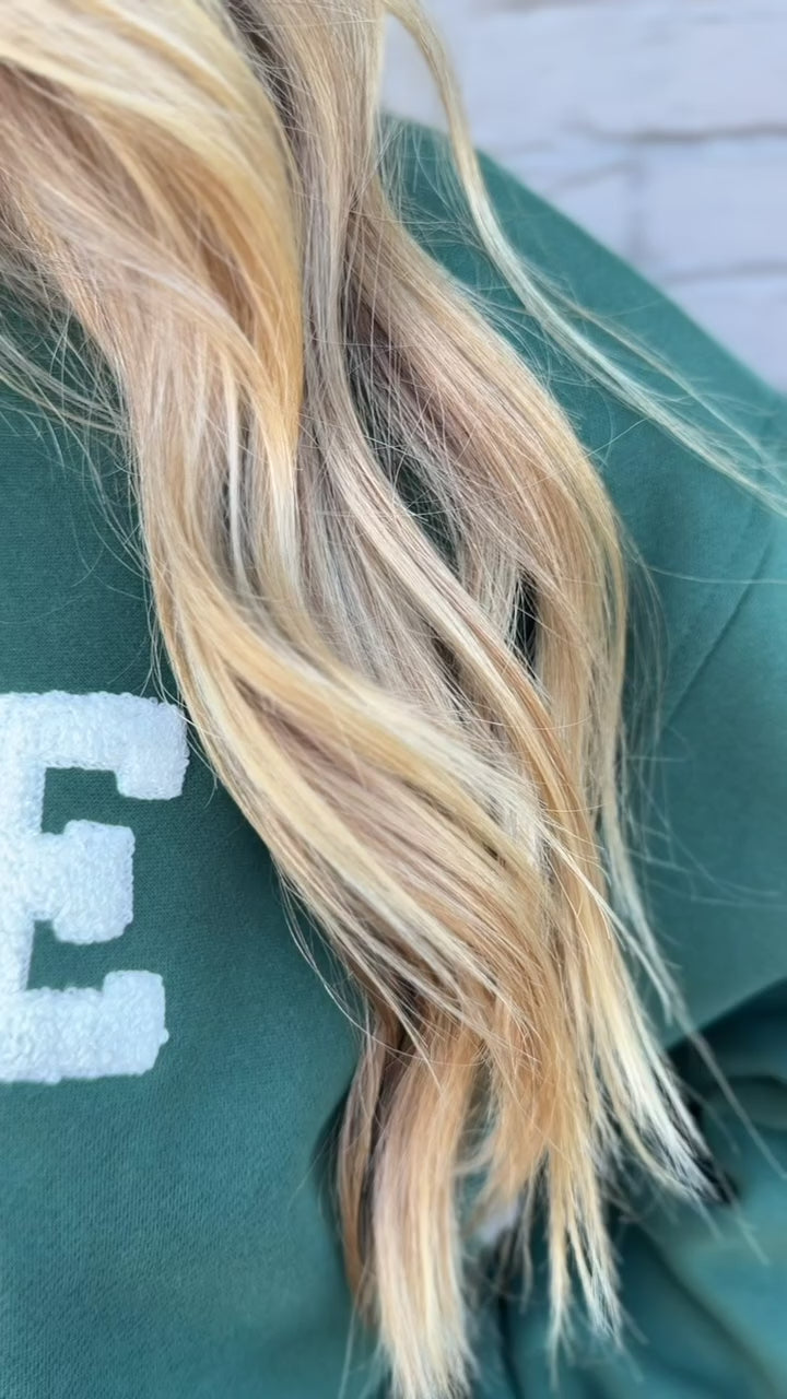 Emily is wearing a large [5’7, 190 lbs, 36D, pear shape]