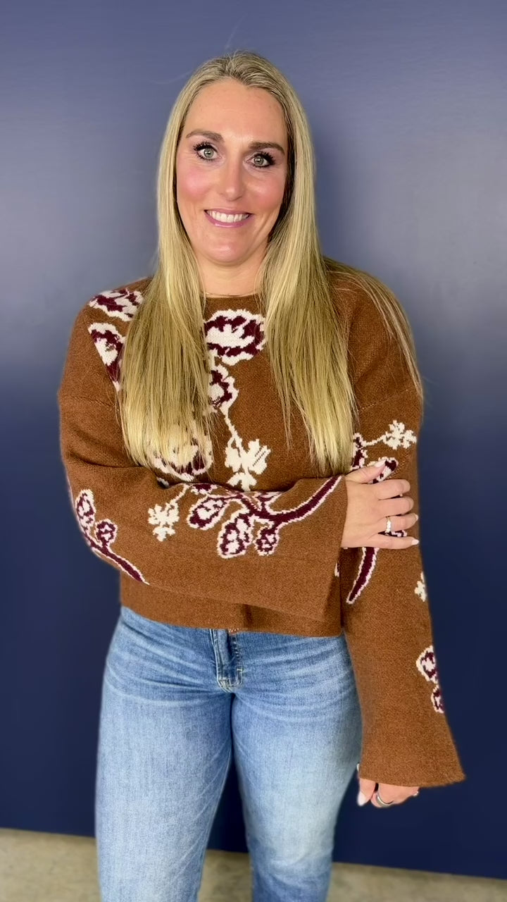 Marcella Floral Bell Sleeve Sweater